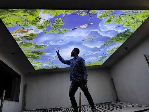 Printed Berrisole stretch ceiling adds a unique and stylish look to your space with custom designs. It is durable, easy to maintain, and gives a smooth finish. Perfect for homes, offices, and commercial interiors.